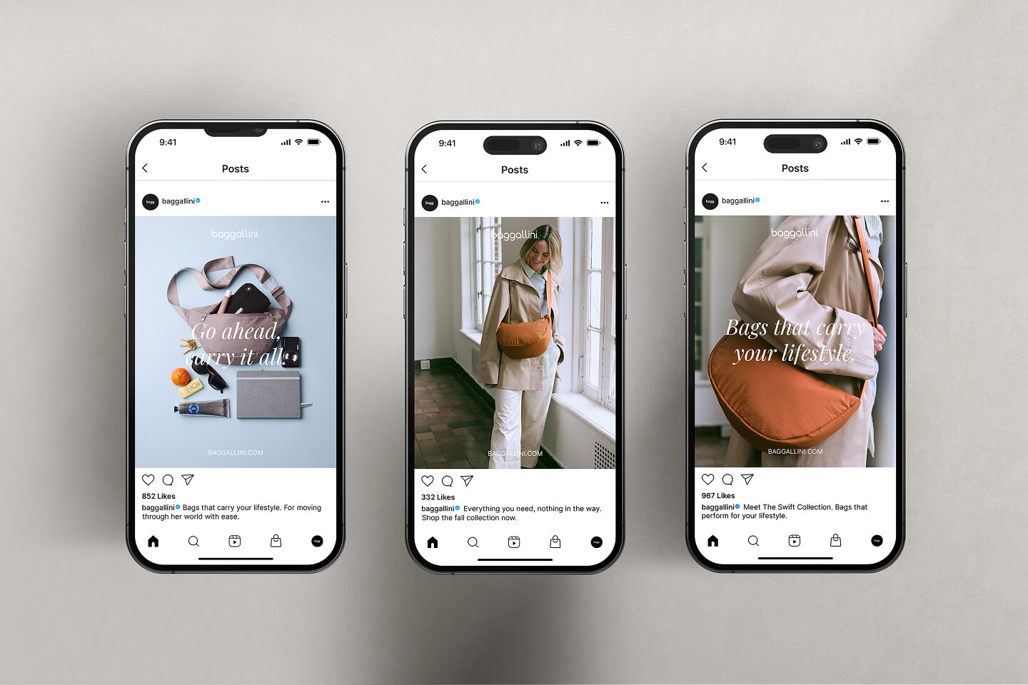 Baggallini had strong sales and loyal customers, but the brand required elevation to resonate with a younger, more style-driven audience. We evolved the positioning to balance function and fashion—preserving its mission-driven foundation while refining tone of voice, visual identity, and overall brand expression to modernize perception and reposition the brand within a more contemporary, lifestyle-driven context without sacrificing trust.